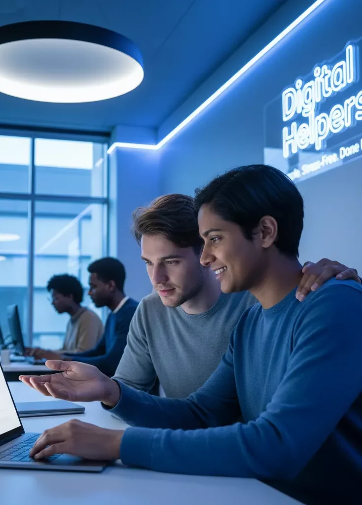 Digital Helpers is a friendly digital support service designed to assist people who find it difficult to use online systems — especially for those who are new to the country or who struggle with online forms.